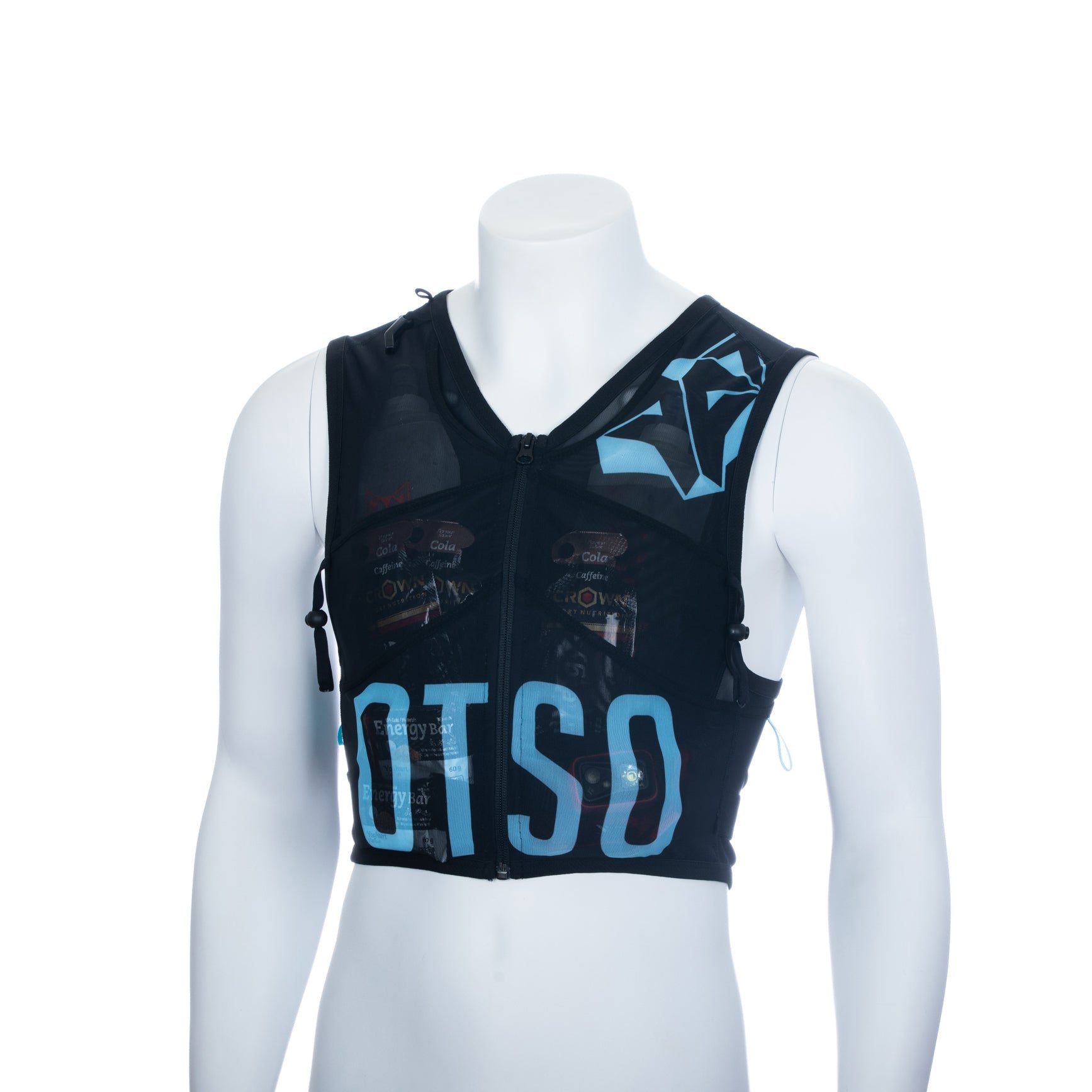 Diseño funcional con una gran capacidad de almacenaje, con cobertura de hasta 12 litros. Con 6 bolsillos frontales ideales para tu nutrición e hidratación (caben hasta 4 bidones de 500ml sin que salga la boquilla al exterior). En los laterales, 2 bolsillos pequeños para pequeños accesorios o nutrición, como geles y barritas. Y en la parte posterior, 3 bolsillos con capacidad para guardar todo el material obligatorio para carreras y de fácil acceso, especialmente el bolsillo inferior, con dos aperturas laterales.