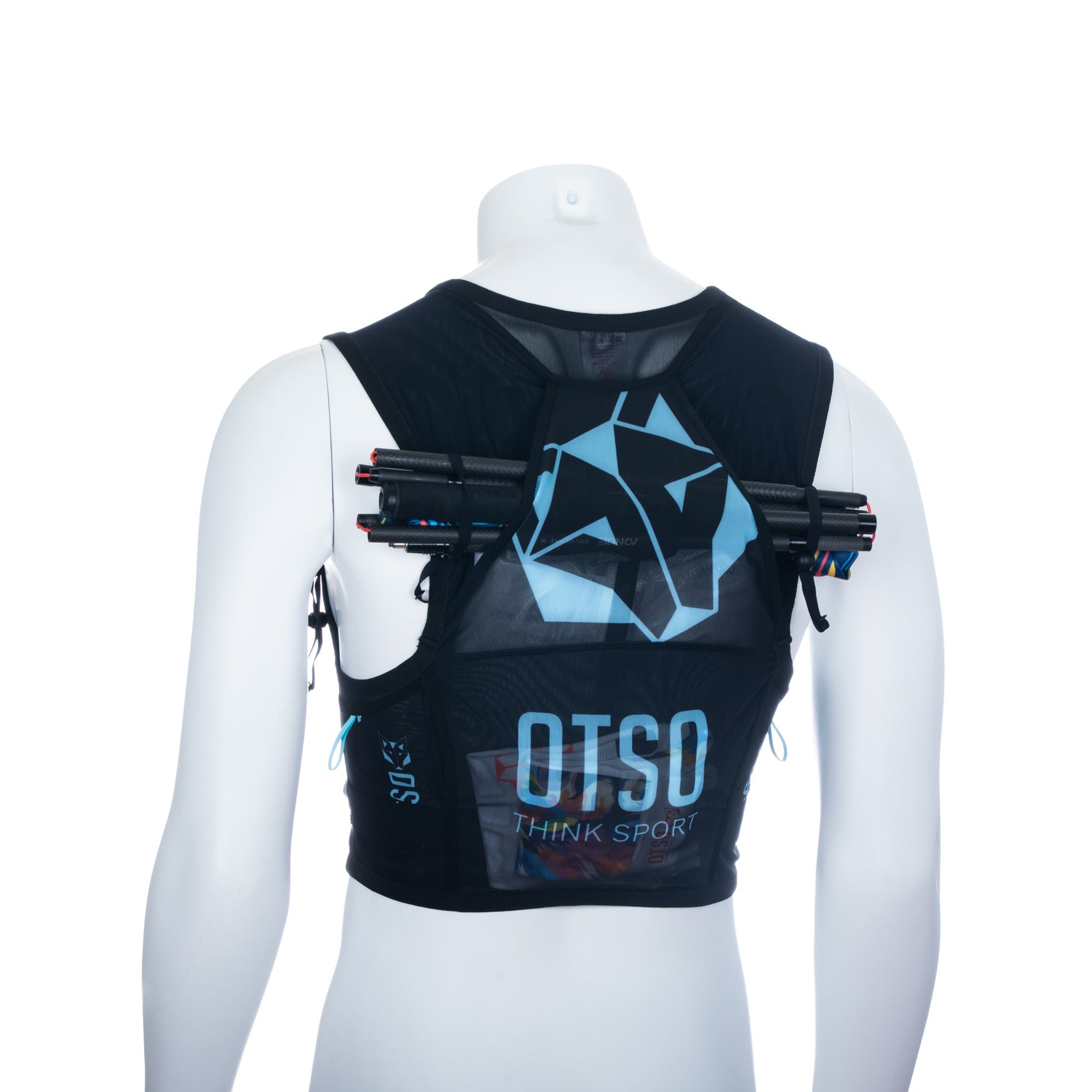 También incorpora un silbato y contiene sujeciones frontales y laterales con goma antideslizante para poder colocar los bastones.